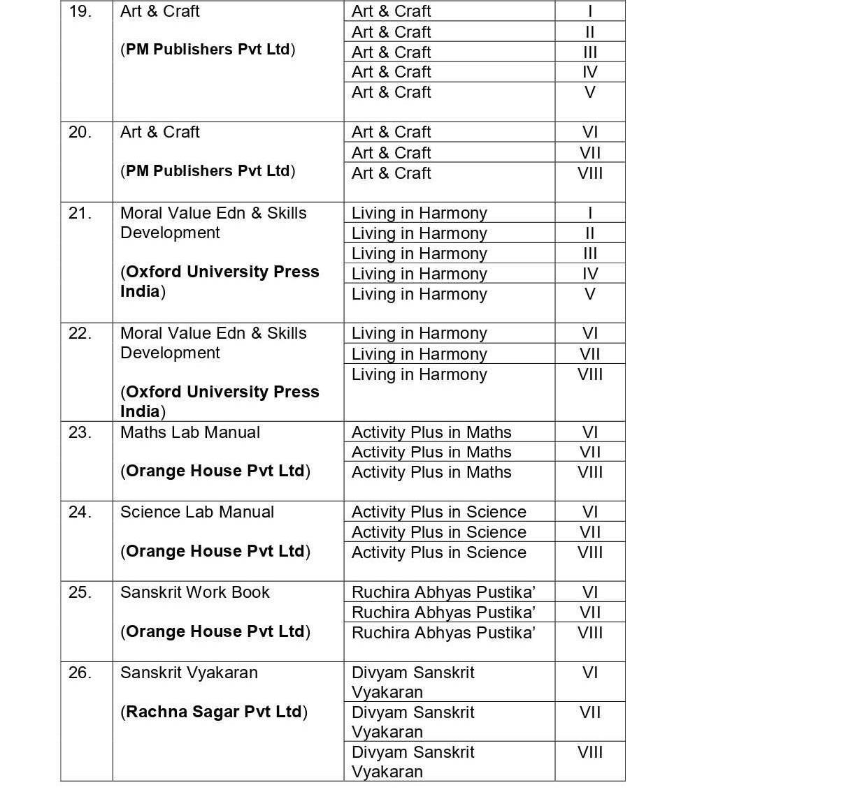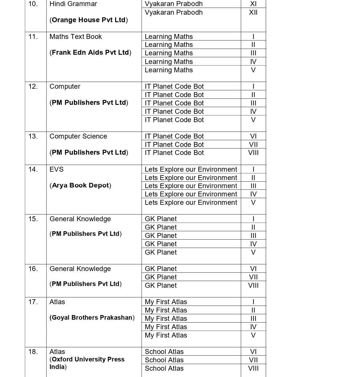 LIST OF BOOKS PRESCRIBED IN VARIOUS CLASSES